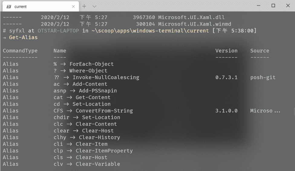 找出冲突的别名后就可以用 Remove-Item alias:\<command> 删除命令别名了,比如我删除了以下的命令别名: